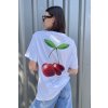 Dámske tričko | biele tričko s potlačou veľkej čerešne vzadu a malej vpredu