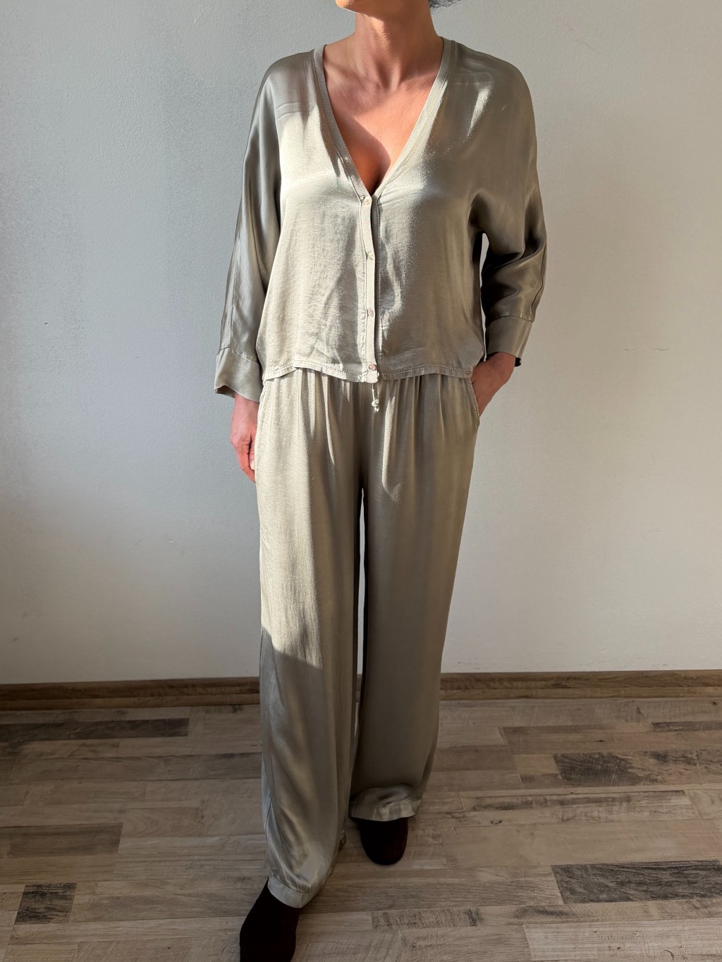 Champagne saténové nohavice Irina