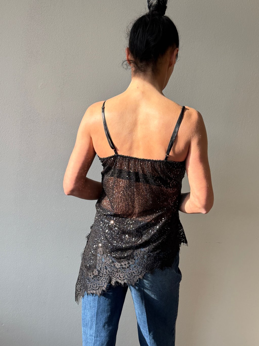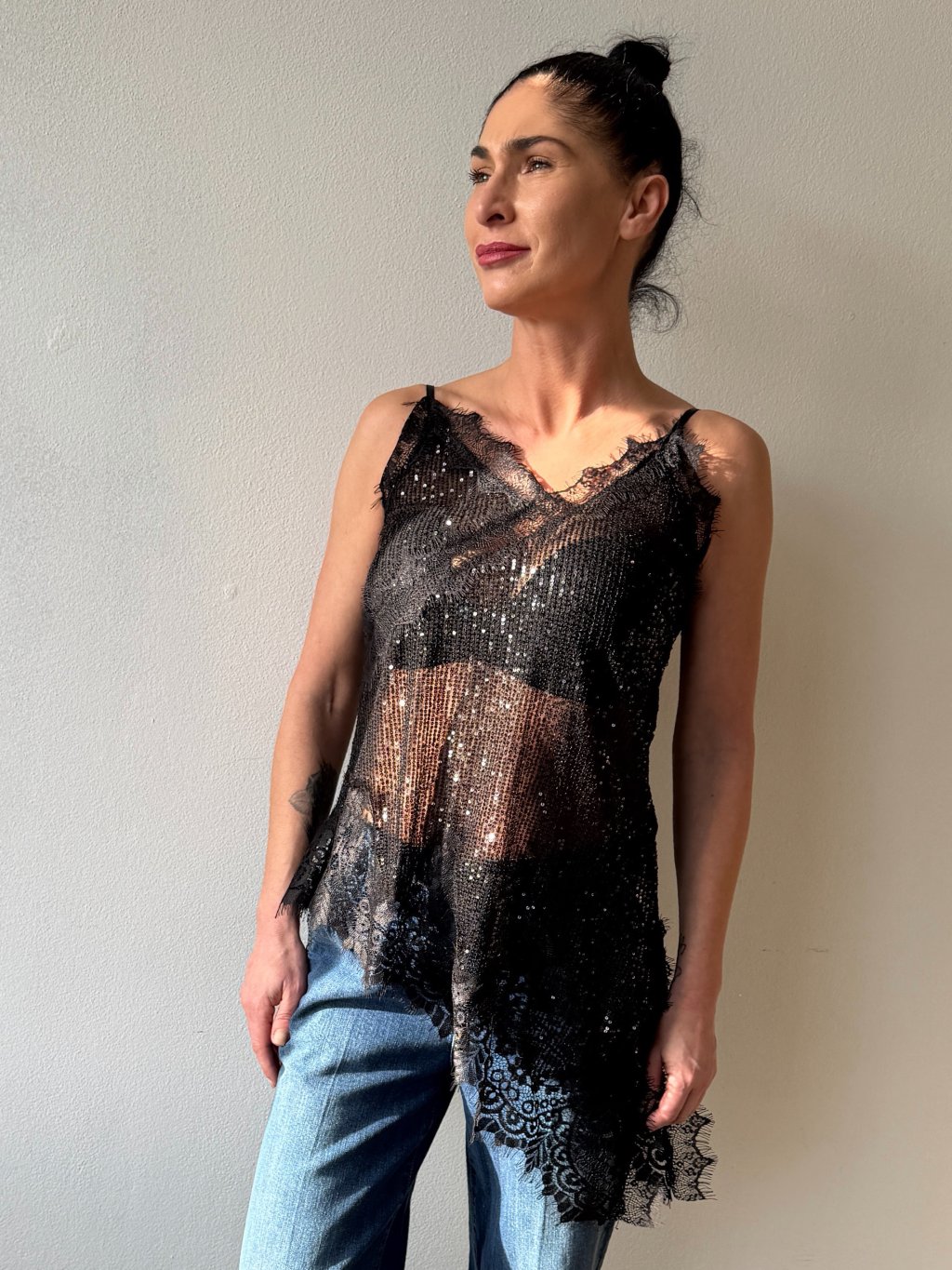 Čierny flitrovaný top Delinda