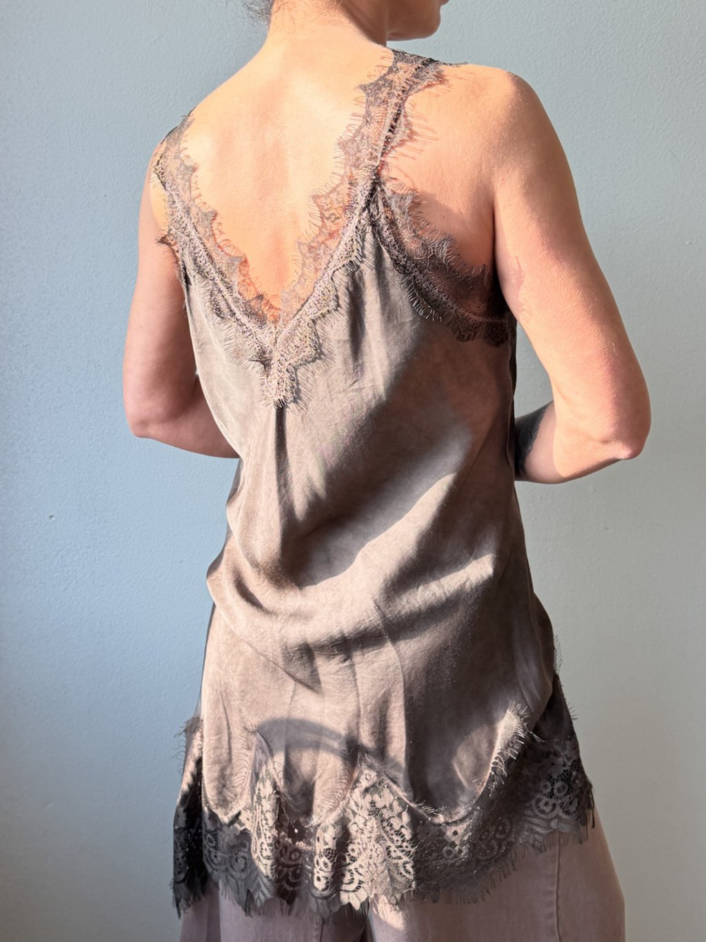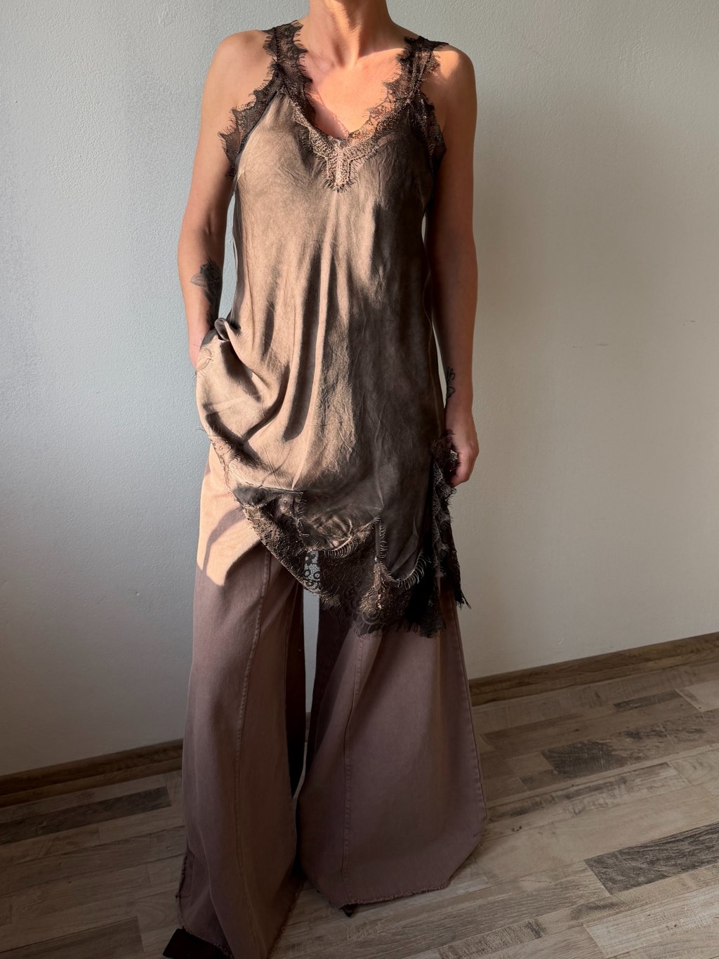 Čokoládový dlhý top s čipkou Lionel