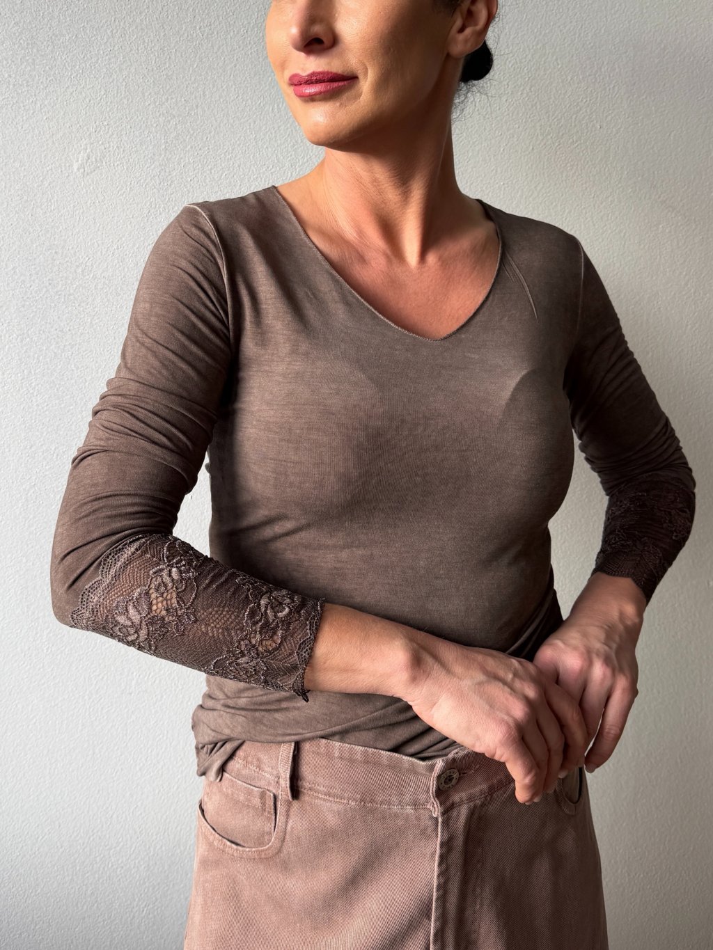 čipkované rukávy| V- výstrih
