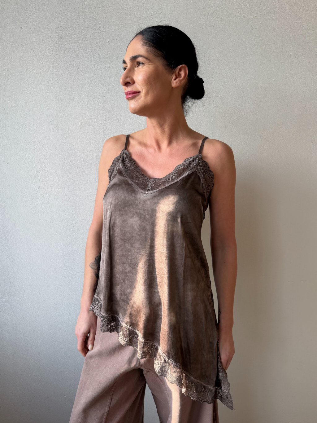 šikmostrihaný top| top s čipkou| nastaviteľné ramienka
