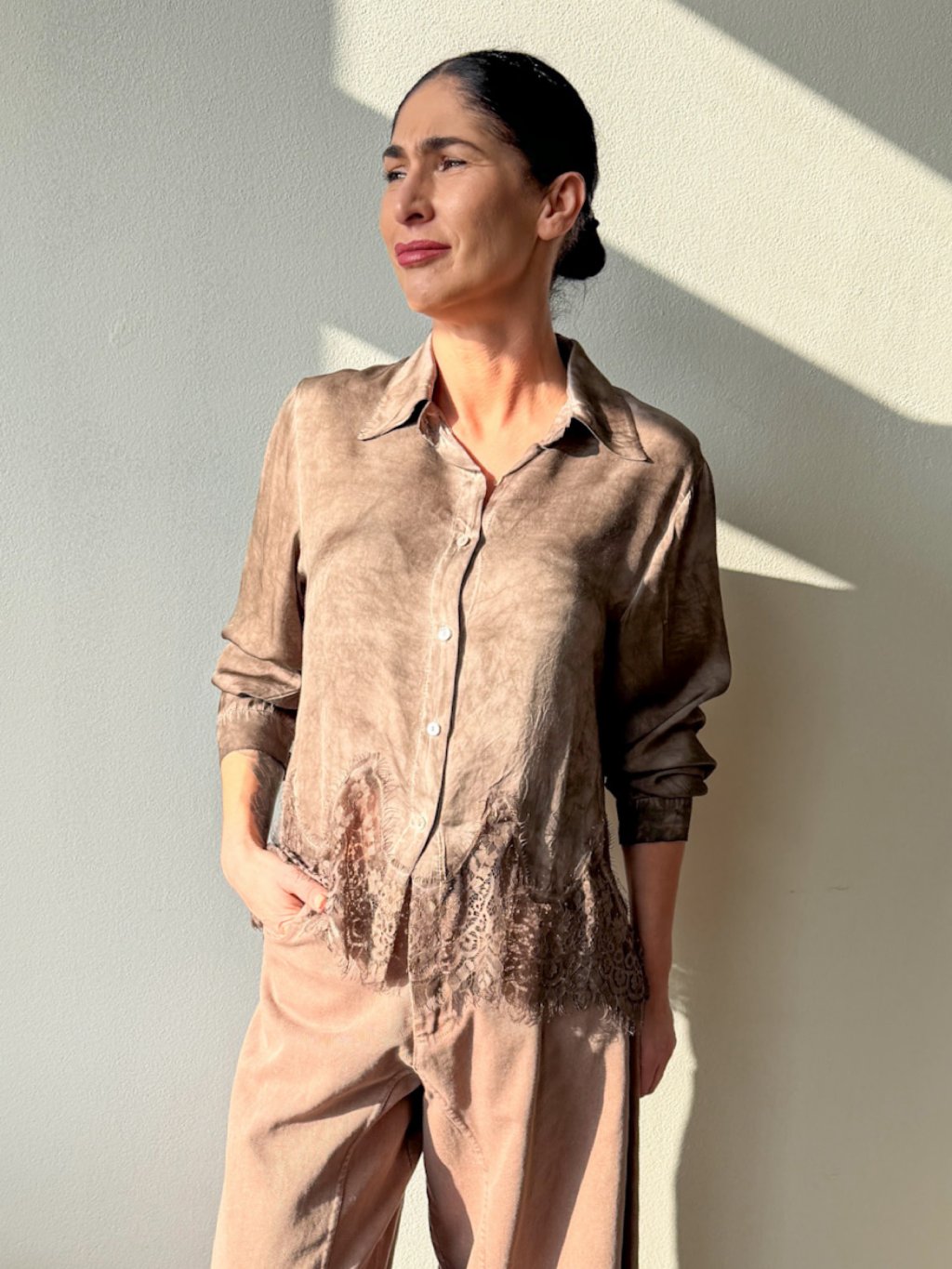 košeľa s čipkou| na rukávoch gombičky| príjemný materiál