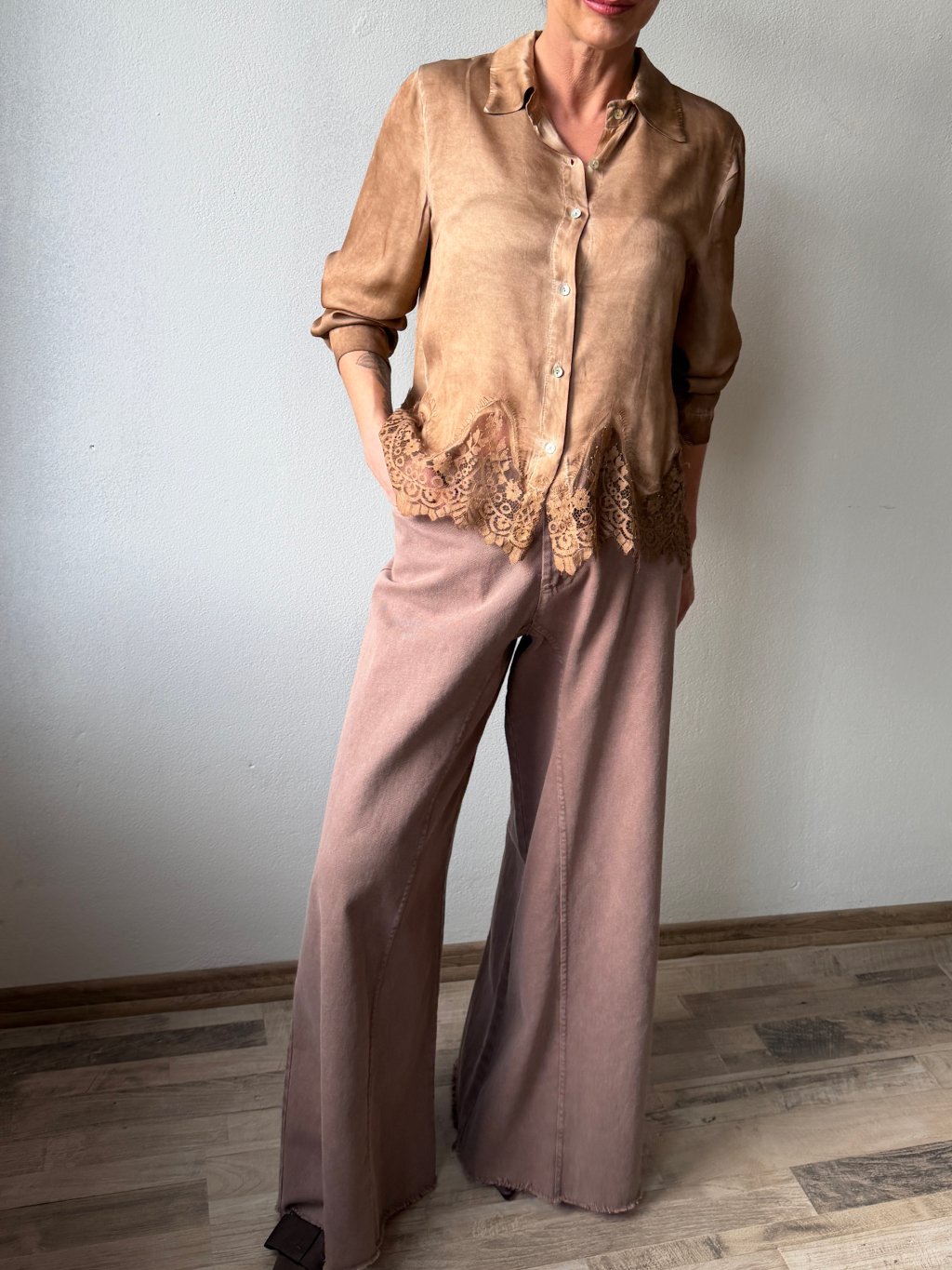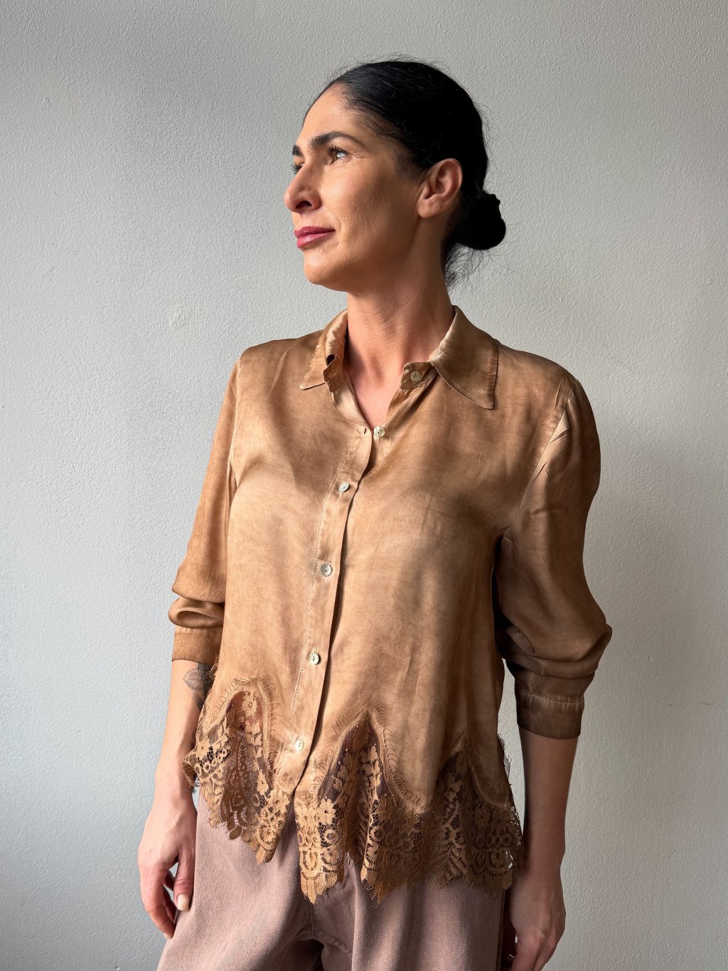Kamel košeľa s čipkou Melinda