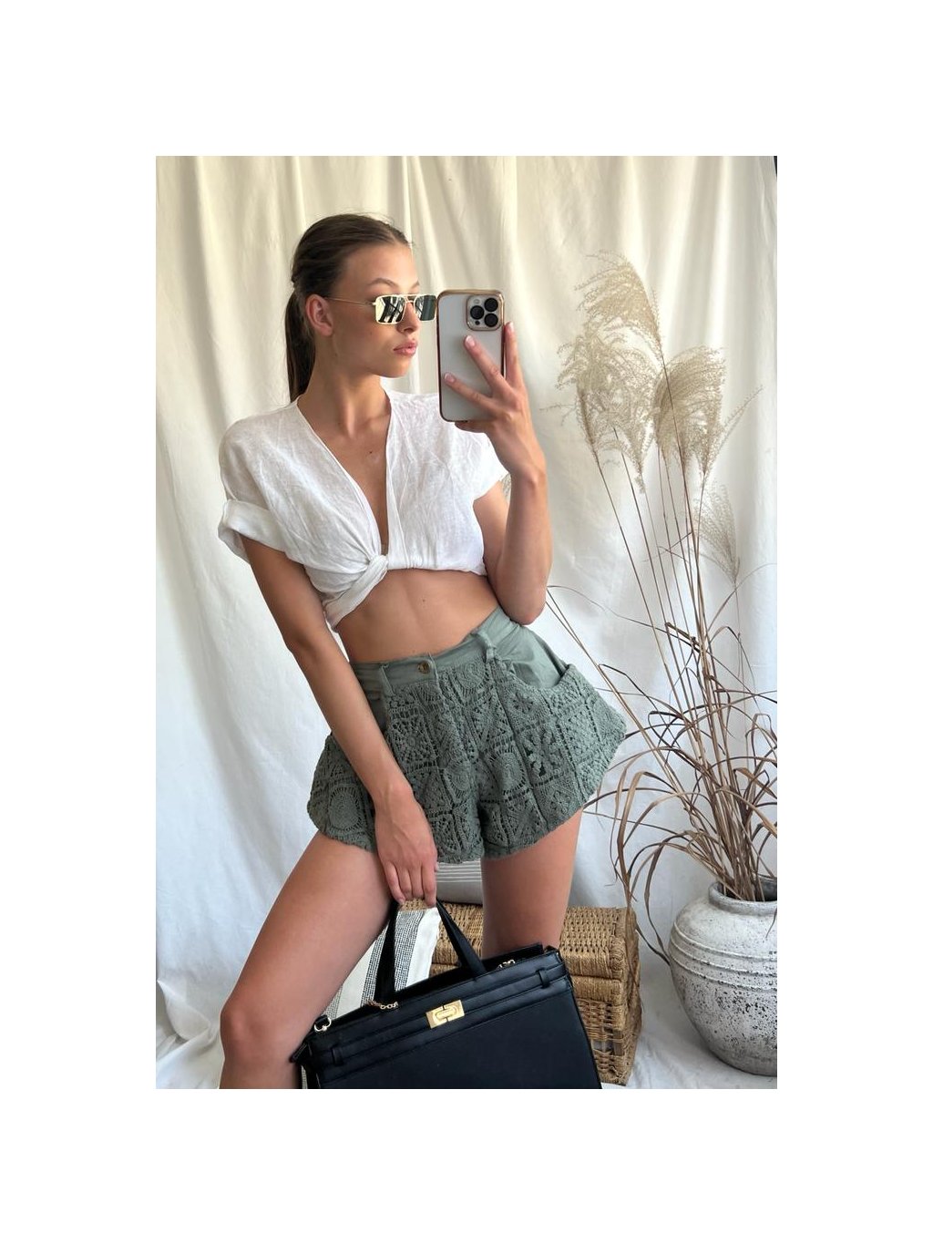 Predný diel hačkovaný, elastická guma vzadu na páse