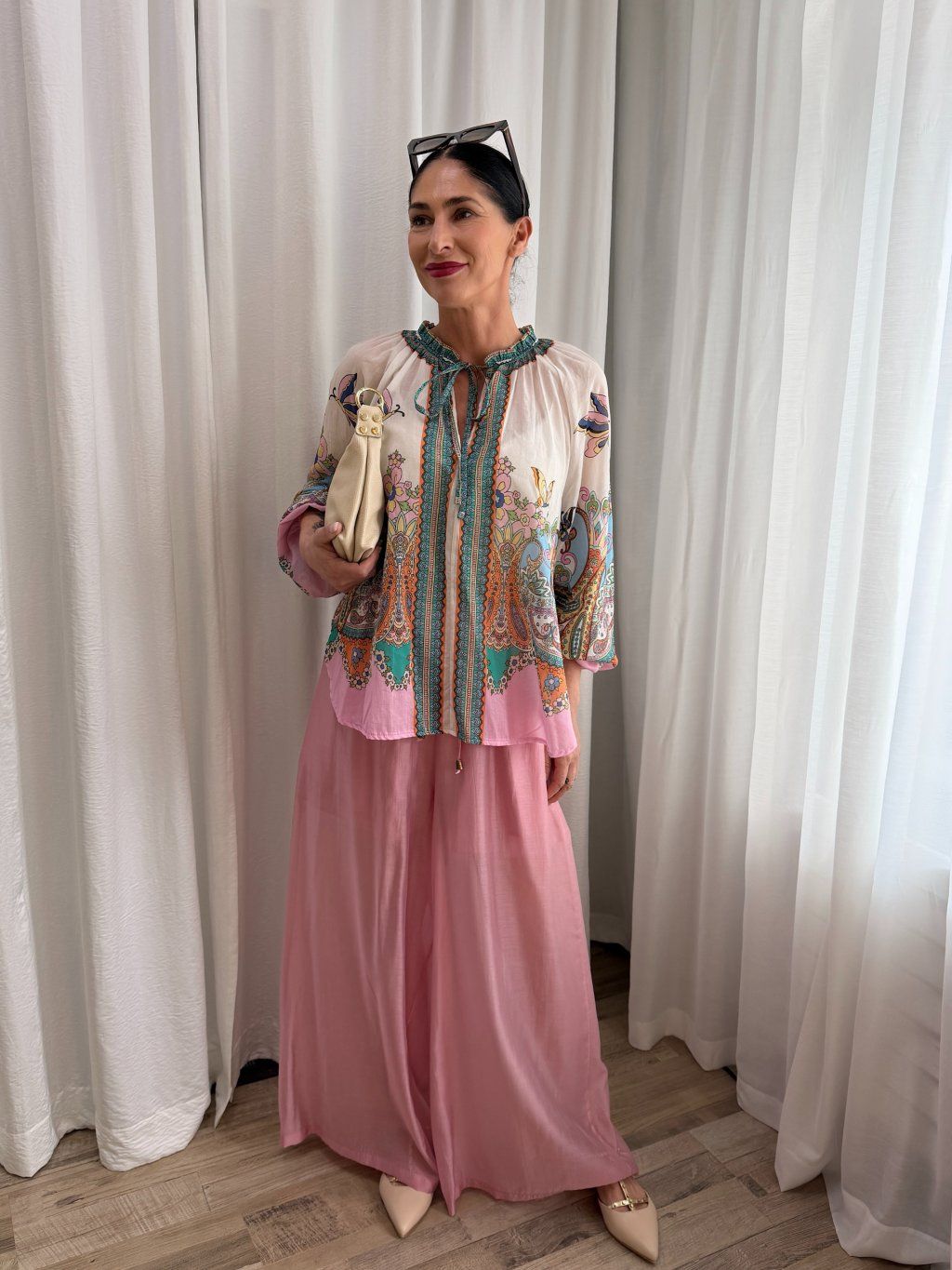 tunika s viazaním| vzor -motýľ | V- výstrih